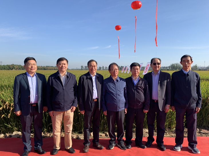 專家領導田間實地查看“南粳3908”田間長勢長相