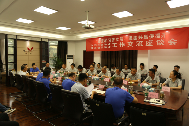 首先,明天種業總經理嚴輝民對紅旗種業查總一行的到來,表示熱烈歡迎。嚴總表示,明天種業作為江蘇省主要農作物種子產業技術創新戰略聯盟理事長單位,應充分發揮聯盟優勢,加強與紅旗種業等兄弟單位的交流合作,共謀發展。紅旗種業、明天種業具有各自的資源優勢和發展特點,雙方在互鑒共贏方面,將來可以尋求更多的切入點開展交流、合作,為江蘇種業協同發展、江蘇糧食安全保障工作,共同提供強有力的支撐。隨后,雙方相關人員進行了詳盡的專題匯報、座談和交流。查總在對座談會總結時表示,雙方將各自成功的經驗,毫無保留的做了分享,這是對此次會議“交流學習齊發展、互鑒共贏促提升”主題的深刻理解,成效明顯。以后要將這種交流機制常態化,尋求機會、通力合作、互助共贏。