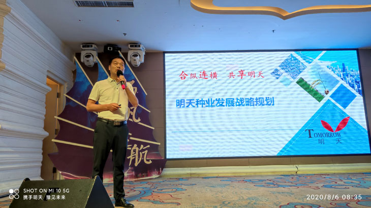 8月5-6日,2020-2021年度河南明天“情聚花都,共創(chuàng)明天”政策發(fā)布大會在花都鄢陵隆重舉行。江蘇明天種業(yè)科技股份有限公司副總經(jīng)理胡玉成、總經(jīng)理助理馬勇、市場運營中心技術(shù)部于國利、吳金鑫,河南明天總經(jīng)理劉路坡、鄢陵縣種子管理站領(lǐng)導,以及來自全省各地的100余位銷售精英相聚在美麗的花都鄢陵,共商明天種業(yè)品種的推廣和發(fā)展及政策發(fā)布大會。