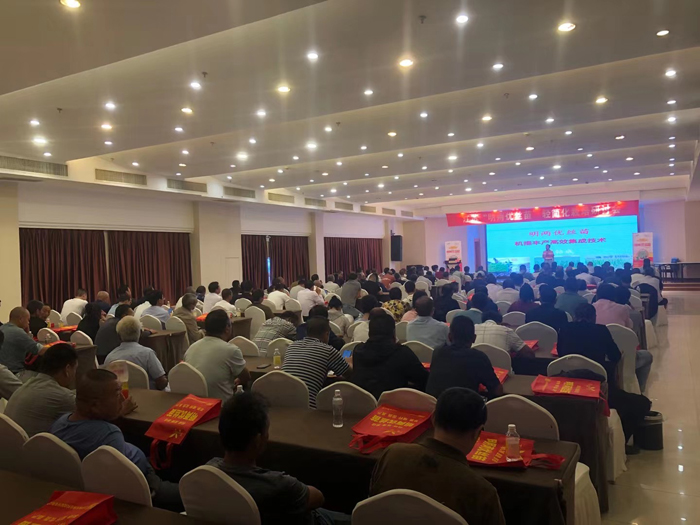 接著由盧偉林經理向參會代理商、種植大戶、育秧合作社代表介紹明兩優絲苗的特征特性以及最近幾年各縣市種植田間表現情況。盧經理介紹到隨著土地流轉,種植大戶越來越多,雜交水稻移栽成本居高不下、人工緊缺,大戶用工難、收益低。明兩優絲苗的生育期、抗倒性、抗病性及產量結構就特別適合當下種植大戶和育秧合作社做雜交稻機插種植。因此雜交水稻的輕簡化栽培勢不可擋,明兩優絲苗應勢而出,適時填補了江蘇淮北雜交水稻機插合法品種的空白。同時詳細介紹了明兩優絲苗的栽培管理措施。