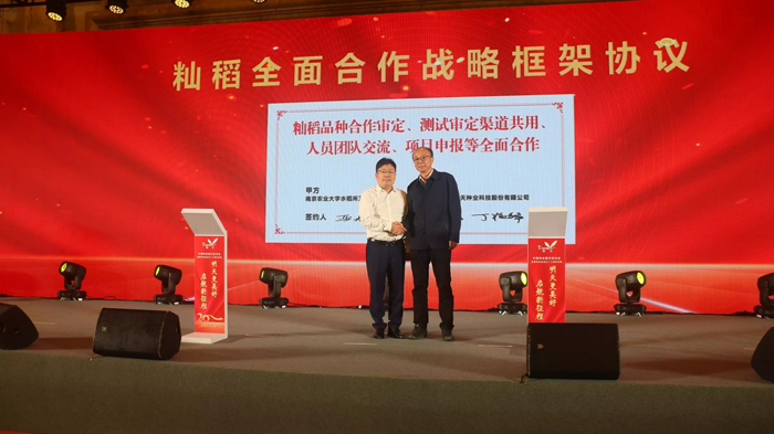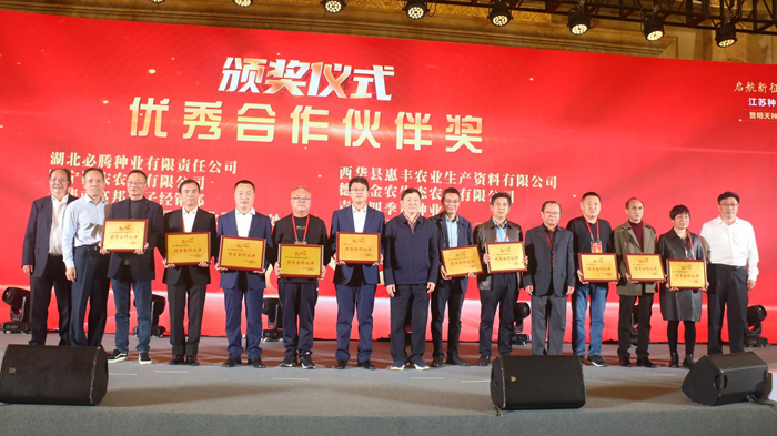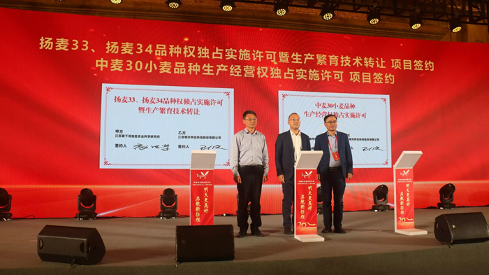 江蘇明天種業科技股份有限公司成立20周年慶典同期舉行。慶典上,江蘇明天種業科技股份有限公司總經理嚴輝民致辭,對二十年來關心和支持明天種業發展的各界朋友表示了感謝。在慶典活動上,公司還舉行了新品種簽約、與南京農業大學萬建民院士團隊戰略合作等簽約儀式、公司新址啟用儀式、新組建子公司揭牌儀式、頒獎儀式等一系列活動,進一步促進產學研融合,為江蘇省種業高質量發展做出更大貢獻。