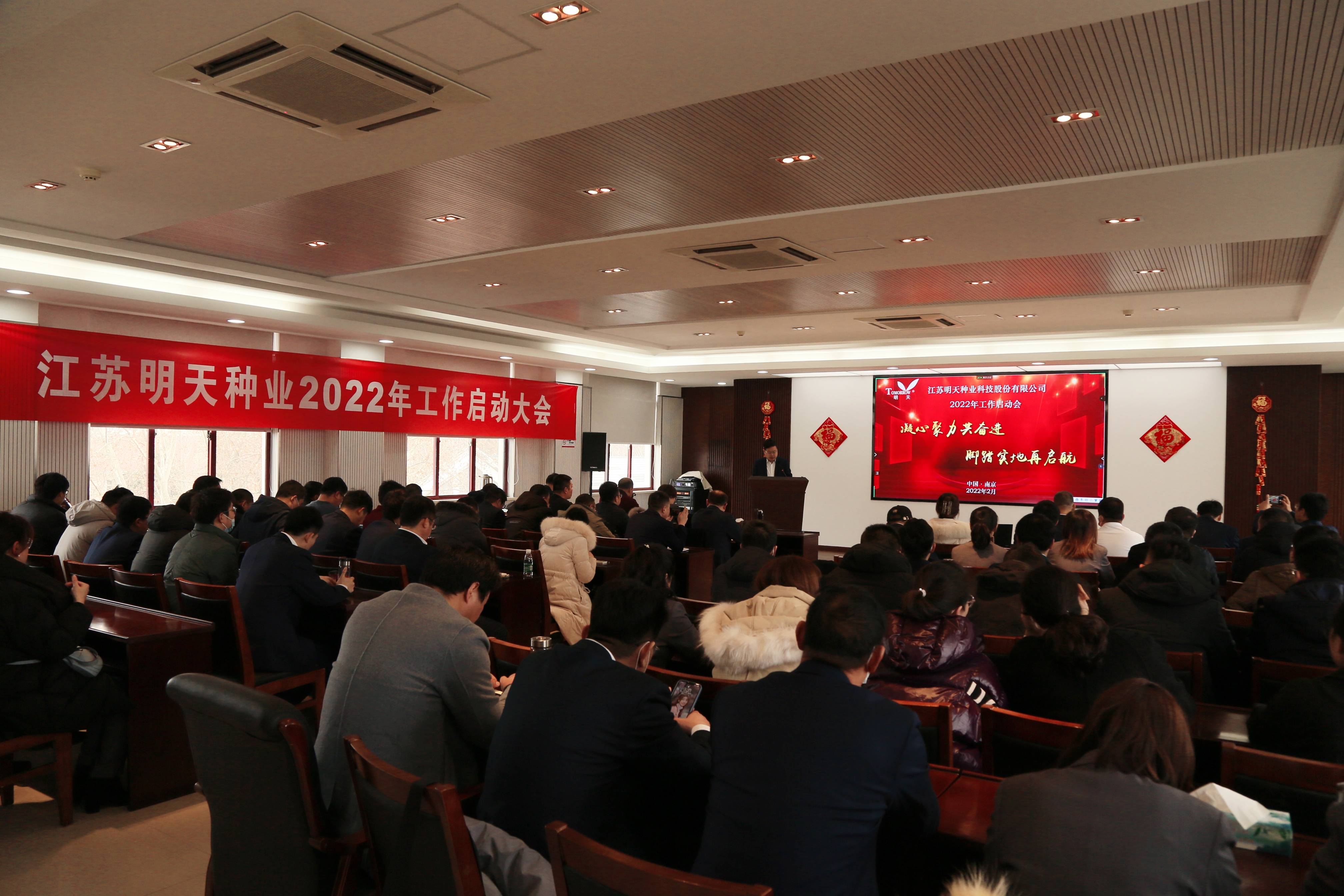 萬物逢春可復蘇,天道酬勤鑄不凡!新年伊始,為淡化節日氛圍,盡快投入工作狀態,2月17日,明天種業在江蘇省農科院糧食所會議室召開了2022年工作啟動大會,會議由副總經理胡玉成主持,嚴輝民總經理作了“凝心聚力共奮進·腳踏實地再起航”的動員報告。公司全體員工、子公司經理層及2021年度先進和優秀員工參加了本次會議。