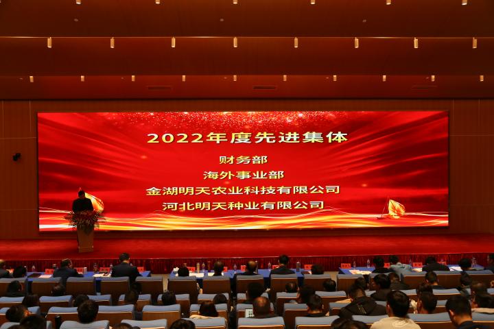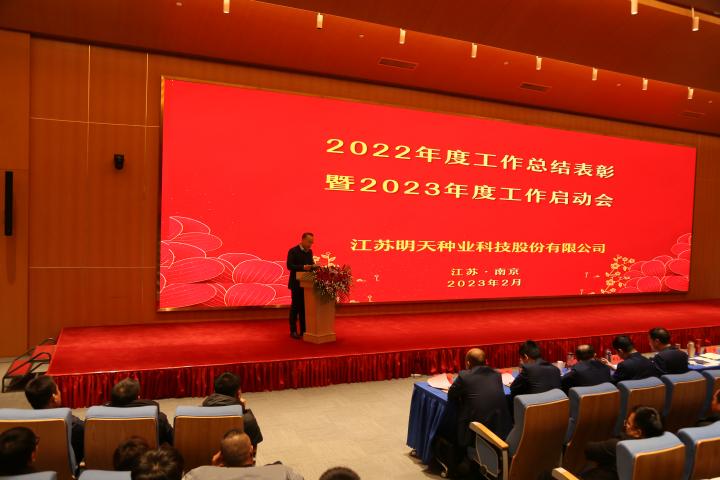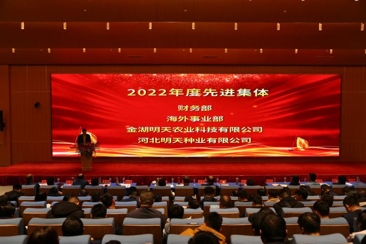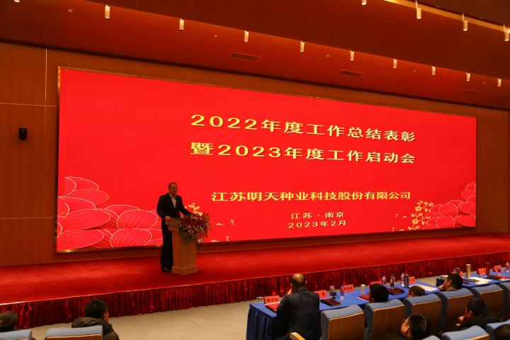 嚴總在工作報告中指出2022年是明天種業不平凡的一年,在面對新冠疫情、市場競爭日趨激烈的嚴峻形勢,公司領導班子同心同德、精心組織;各級管理人員積極響應、主動作為;一線員工愛崗敬業、工作勤奮;全體員工齊努力,共克難,經受住了考驗。公司各項事業穩步推進,成果豐碩。2022年銷售和利潤取得新的雙突破,實現四連增;公司被農業農村部列入“國家種業陣型企業”和再次被認定為“中國種業信用骨干企業”,綜合排名第11位;“制種大縣+龍頭企業”項目順利實施,金湖產業園建設基本完成。2023年是公司第一個五年規劃實施的關鍵第四年,全面完成全年的工作目標任務對明天種業未來的發展意義深遠。公司將全面貫徹落實黨的二十大精神,全面落實“以國內市場為主體,創新升級實現跨越,以國外市場為突破,積聚資源,注重實效”的戰略部署,以“搶抓種業振興機遇,拼出更加美好明天”為行動綱領,超前謀劃、統籌管理、積極落實,確保2023年經營目標任務的實現。